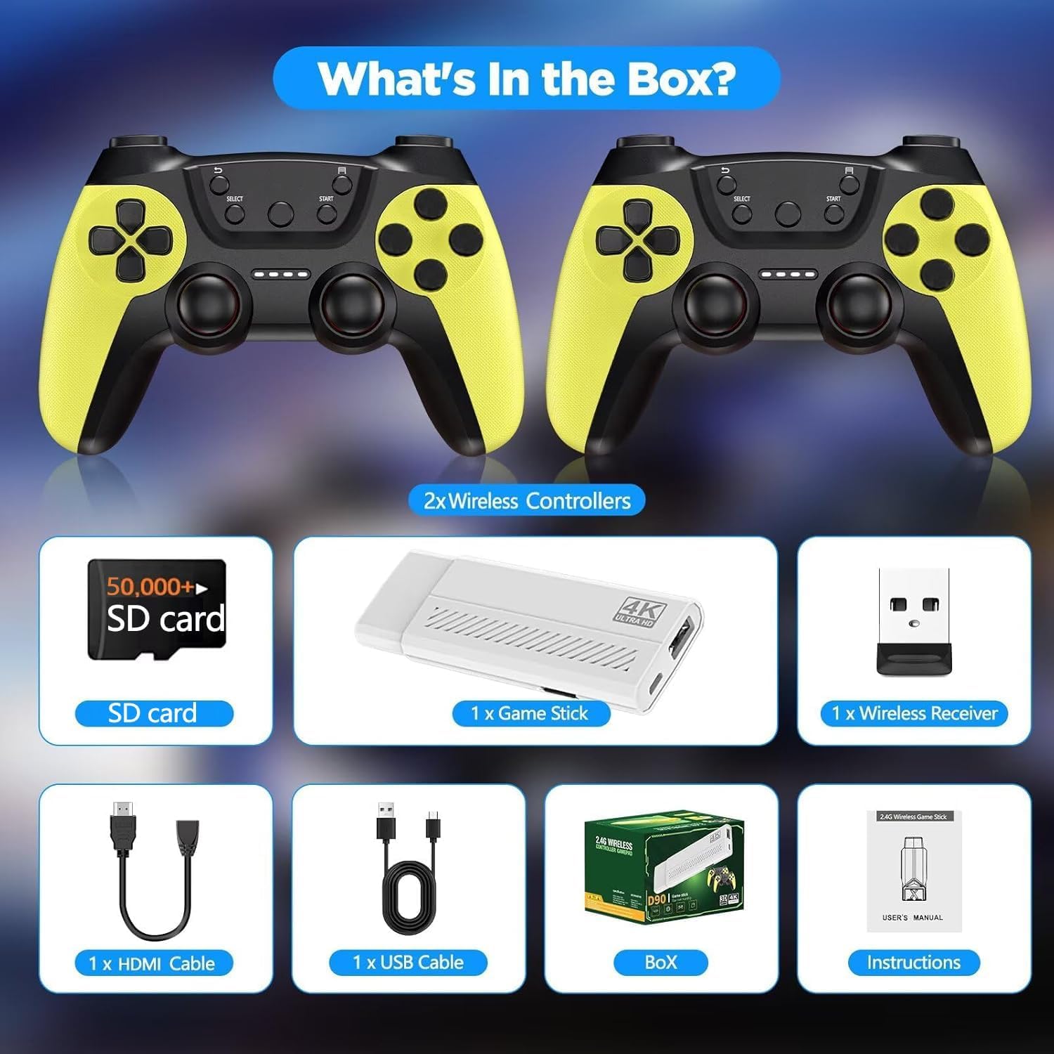 50,000+ Wireless Retro Game Stick, video game console, retro game console, HDMI TV Display Device HD Output, Revisit Classic Video Game Plug and Play, Premium Competitive Dual Controllers